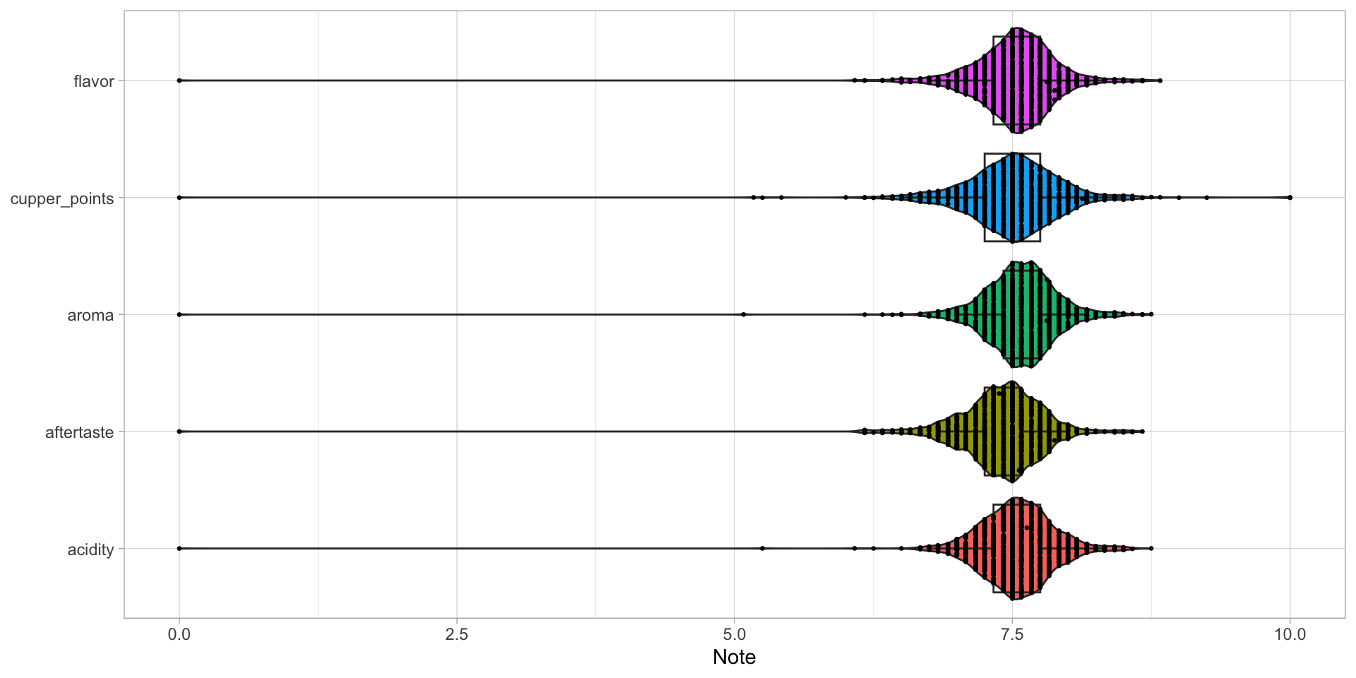 Familiarisez-vous avec le jeu de données coffee_raw. Y a-t-il des observations aberrantes ou des variables à adapter ?